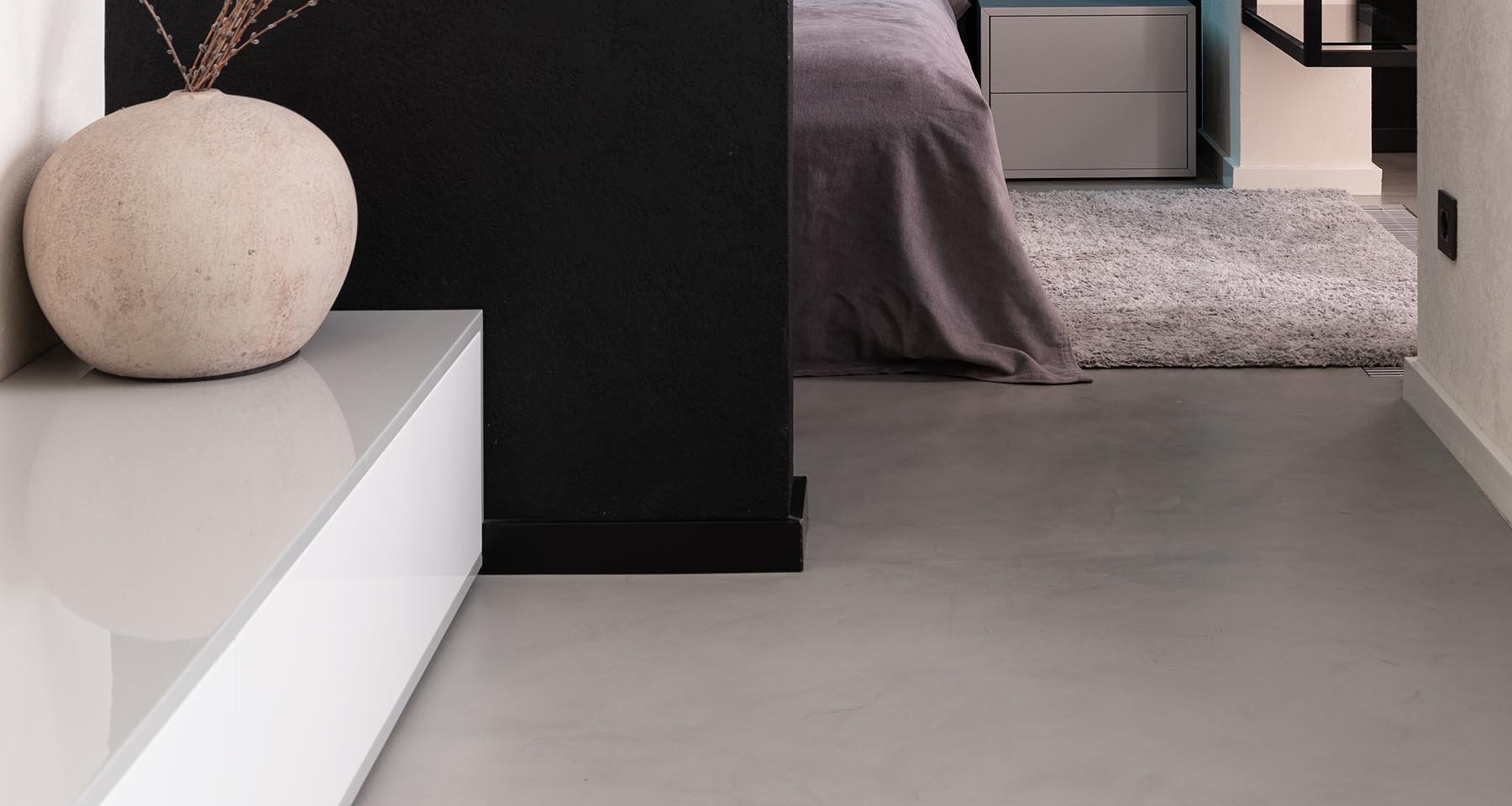 Seamless and Continuous: One of the primary attractions of microcement is its ability to create seamless and continuous surfaces. Unlike traditional flooring materials, such as tiles or wood, microcement does not require grout lines or joints. This smooth and uninterrupted finish contributes to a modern and spacious aesthetic, while also making cleaning and maintenance easier.